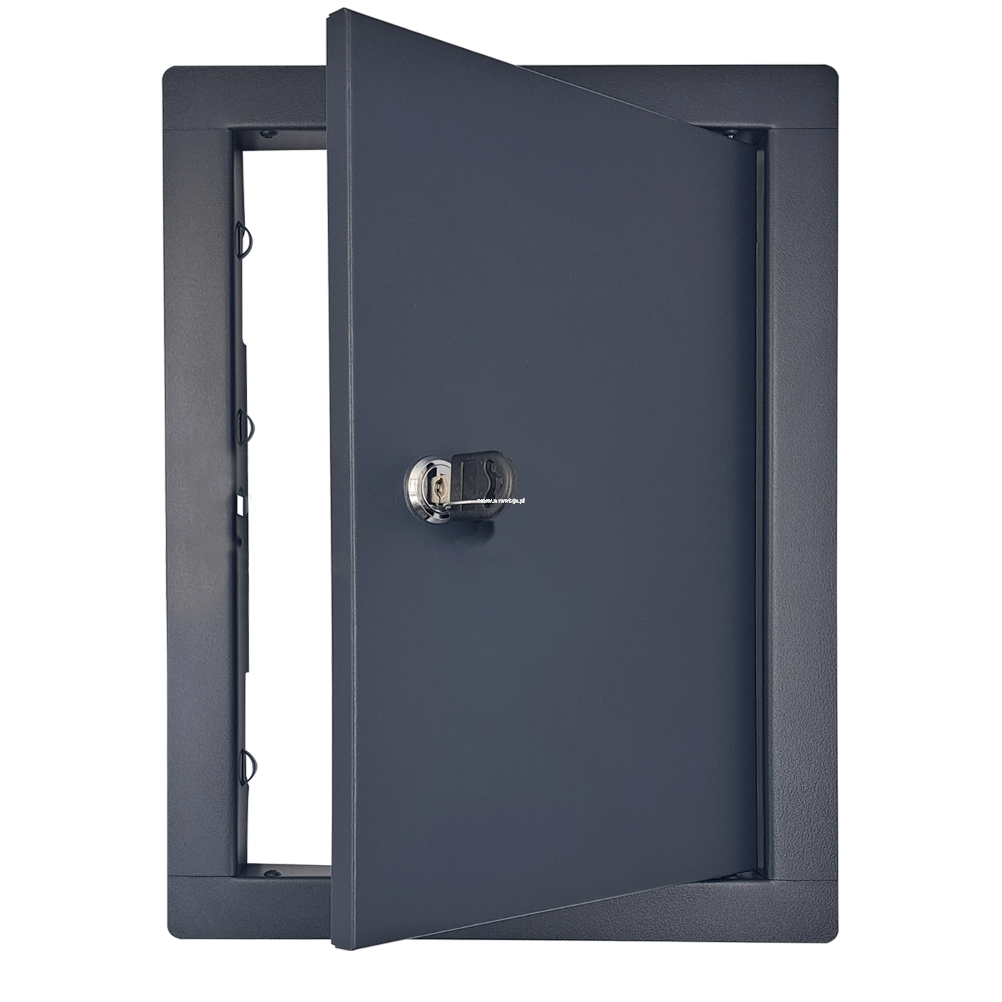 150x200 mm (15x20 cm) Metalowe Drzwiczki Rewizyjne CLASSIC- Grafitowe RAL7016, Zamykane na Klucz | Idealne do Wnętrz i na Zewnątrz!