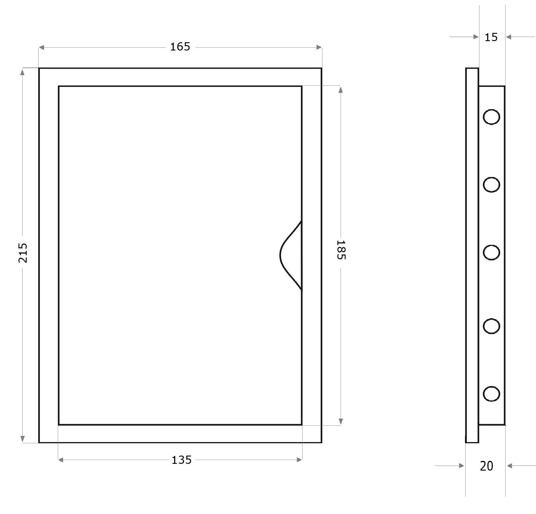 - Wymiar całkowity: 165 mm x 215 mm