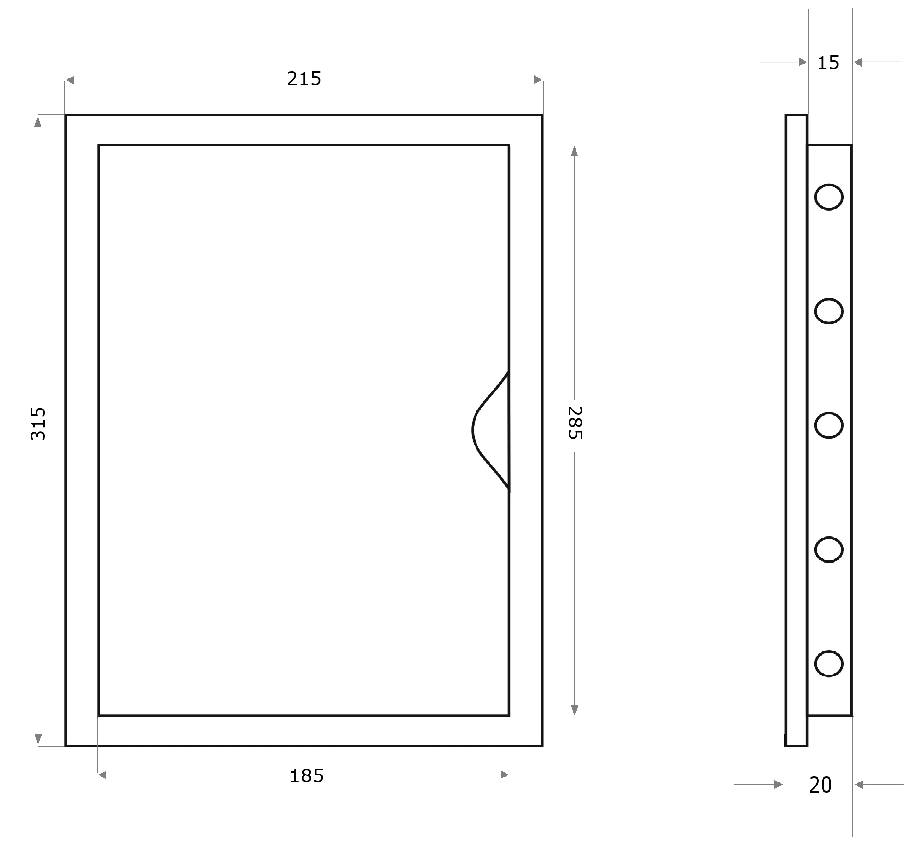 - Wymiar całkowity: 215 mm x 315 mm