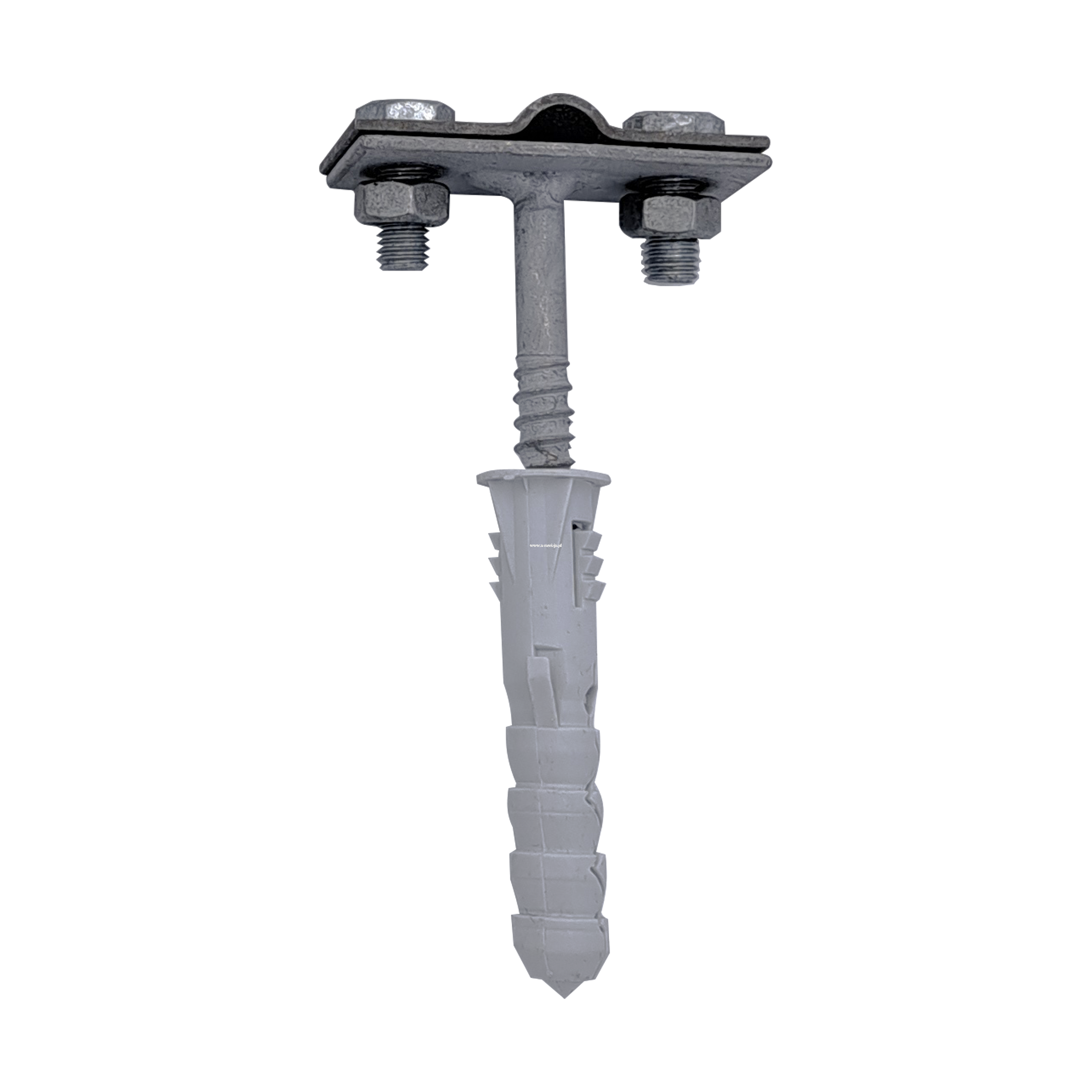 Wytrzymały uchwyt z kołkiem rozporowym i śrubą przeznaczony do instalacji odgromowych. Wykonany z solidnej stali i zabezpieczony ocynkiem ogniowym, który zapewnia wysoką odporność na korozję i długą żywotność w wymagających warunkach atmosferycznych.