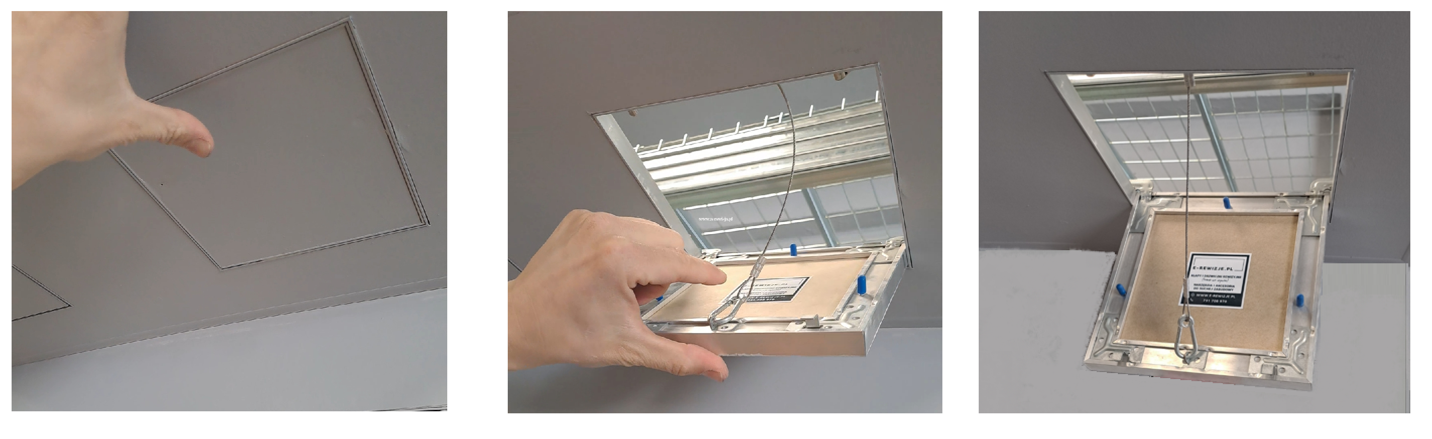 - Drzwiczki są doskonałe do montażu w suficie, choć mogą być również montowane na ścianie.