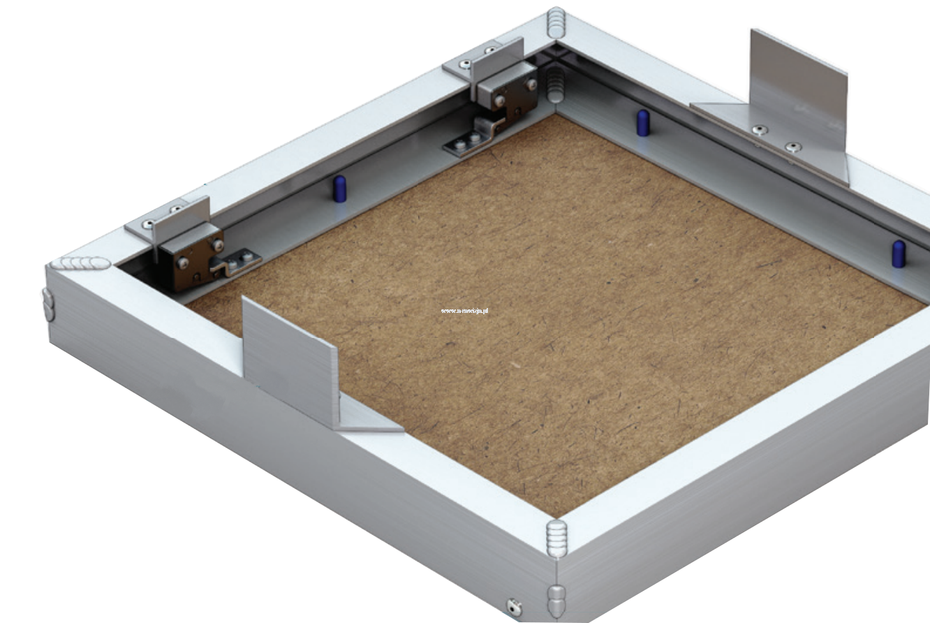 Rewizja wykonana ze spawanych profili aluminiowych tworzących wewnętrzną i zewnętrzną ramę. Cały zestaw jest podłączony za pomocą stałych zawiasów umożliwiających otwarcie drzwi w razie potrzeby. Rama zewnętrzna zawiera dodatkowe elementy montażowe. Model ten produkowany jest z impregnowaną płytą GK o grubości 12,5 mm w kolorze zielony, montowaną do ramy wewnętrznej za pomocą śrub.