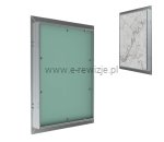 Drzwiczki rewizyjne CERAMIKO ukryją Twój otwór rewizyjny!Drzwiczki rewizyjne pod płytki CERAMIKO wykonane zostały z profili aluminiowych, spawanych do ramy zewnętrznej i wewnętrznej. Cała konstrukcja połączona jest za pomocą stałych zawiasów, co umożliwia otwarcie skrzydła drzwiowego na bok, w razie potrzeby. Model produkowany jest z zieloną, wodoodporną, impregnowaną płytą GK w kolorze zielonym. Płyta ma grubość 12,5 mm. Ponad płytą gips-karton znajduje się dodatkowy kołnierz o wysokości 13 mm tworzący wnękę, która umożliwia wklejenie płytki ceramicznej. Po przyklejeniu płytki, całość licuje się z pozostałymi płytkami na ścianie tworząc spójną i elegancką całość. Wygodne otwieranie i zamykanie gwarantuje zamki zatrzaskowe klik-klak (tip-on), które znajdują się na ramie zewnętrznej. Naciśnięcie skrzydła drzwiczek rewizyjnych w miejscu zamka spowoduje otwarcie drzwi, natomiast ponowny docisk umożliwi ich zamknięcie. Konstrukcja drzwiczek CERAMIKO została zaprojektowana z uwzględnieniem obciążenia jakiemu muszą sprostać drzwi w połączeniu z płytką, dlatego bez obaw można wklejać w nie ceramikę. |