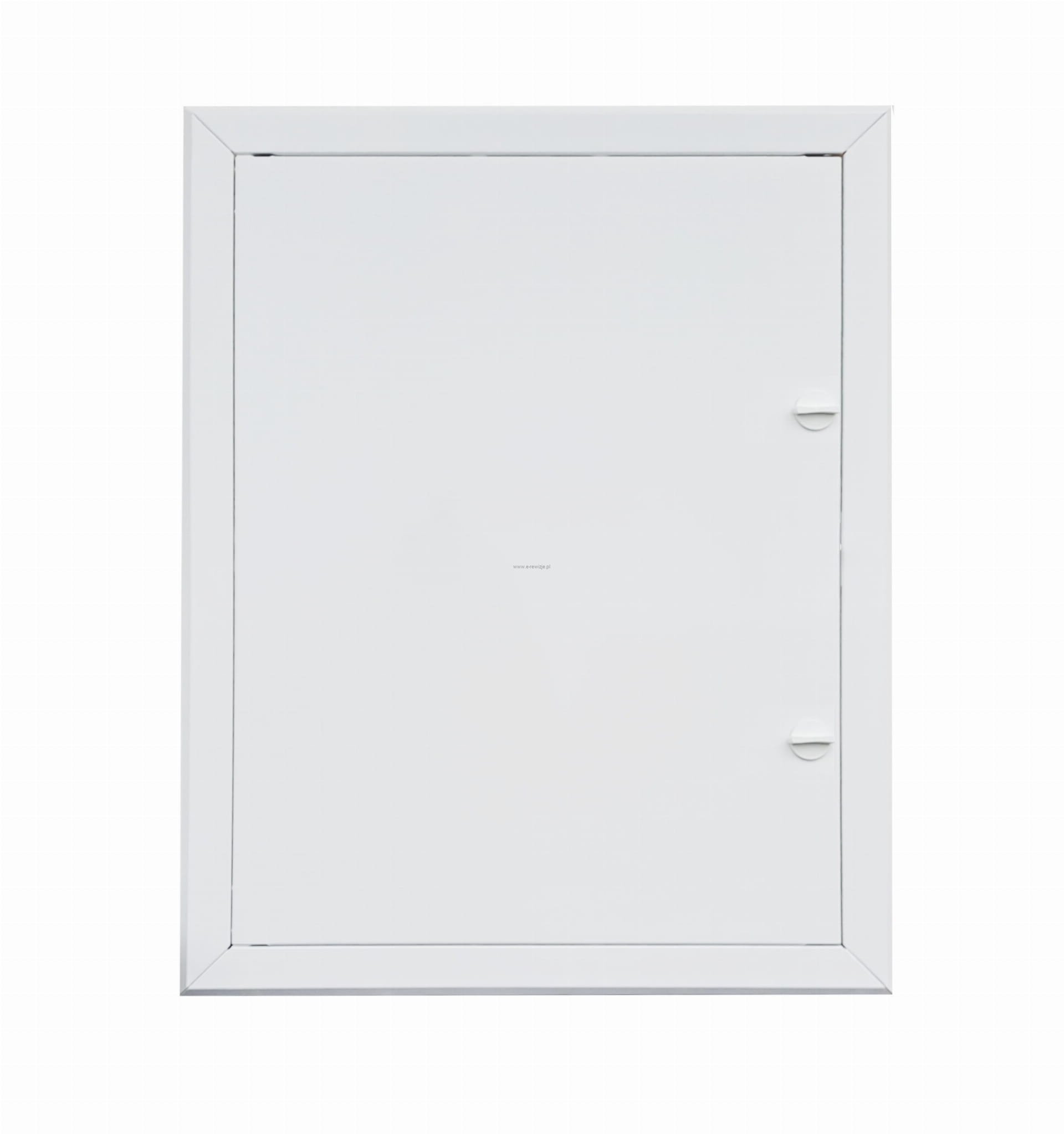 - Metalowe drzwiczki rewizyjne malowane proszkowo na kolor biały RAL 9016, zabezpieczone antykorozyjnie warstwą cynku.