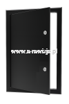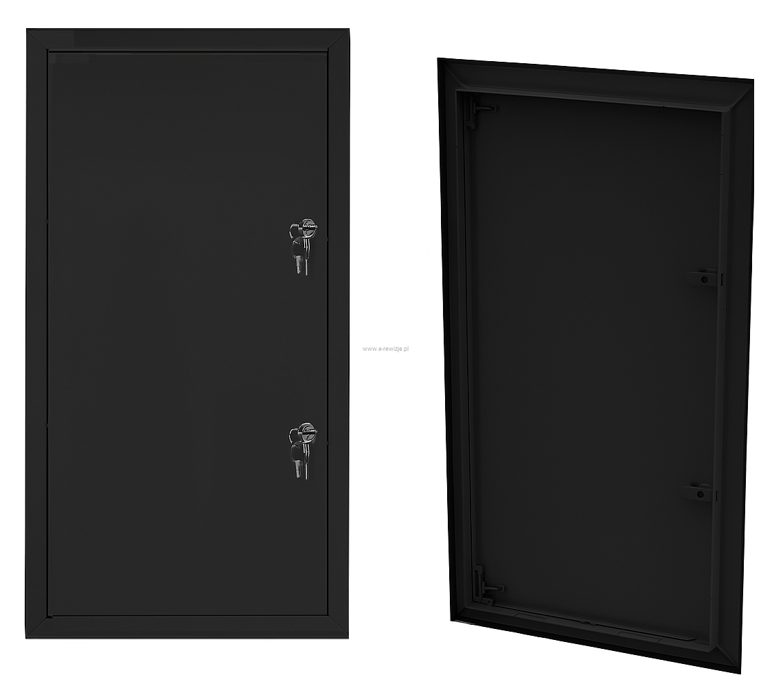 - Metalowe drzwiczki rewizyjne malowane proszkowo na kolor czarny RAL 9005, zabezpieczone antykorozyjnie warstwą cynku.