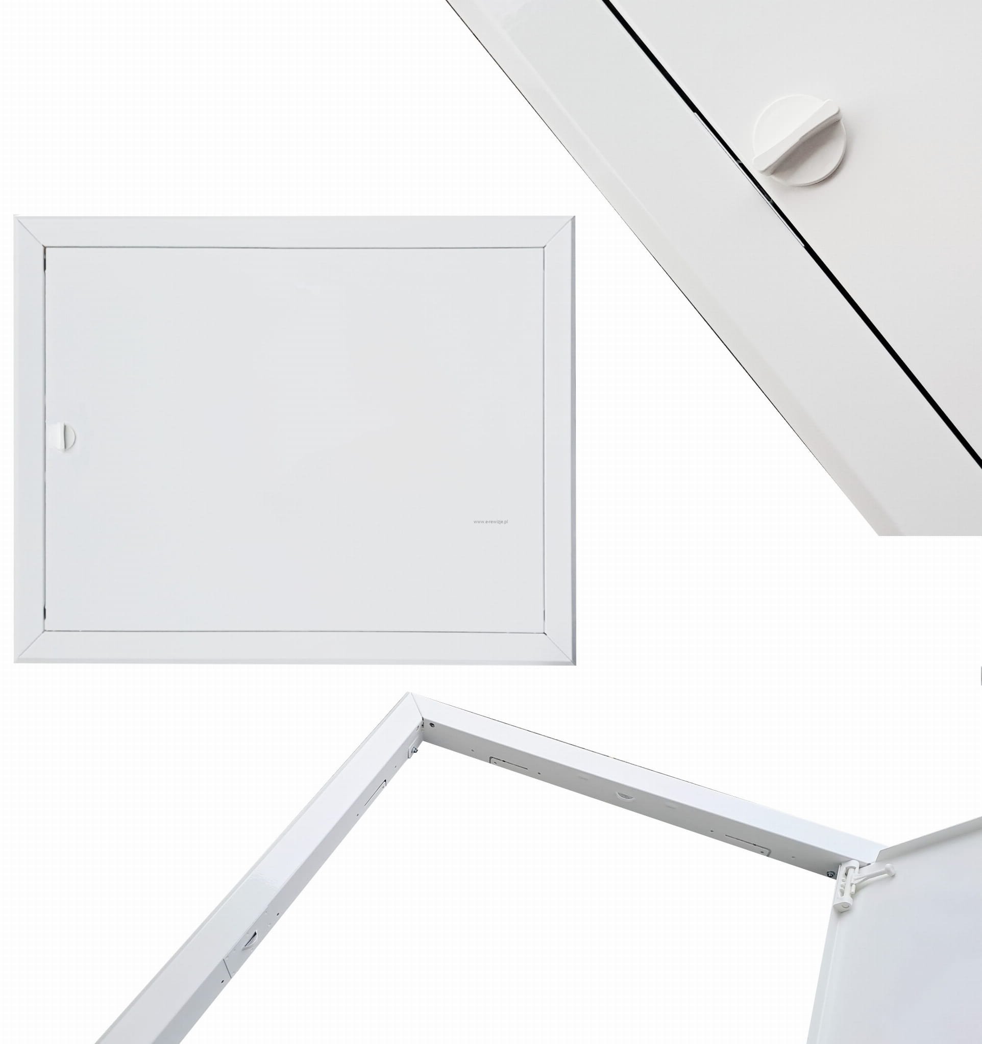 Drzwiczki rewizyjne na podwójnym zamku , zamykane na zatrzask - idealne do zakrywania otworów rewizyjnych w instalacjach budowlanych.
