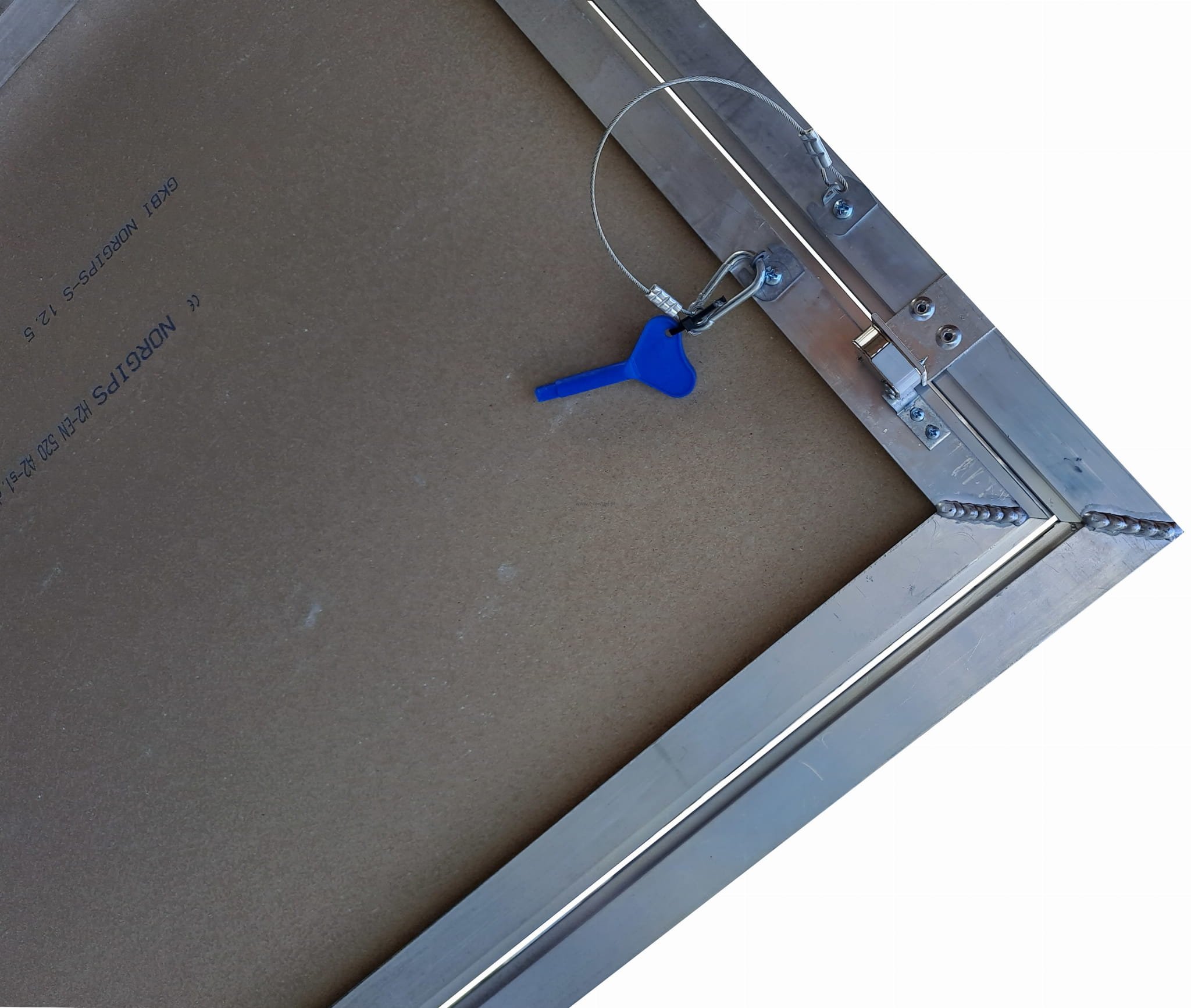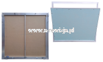 Drzwi rewizyjne REMO STRONG wykonane zostały ze spawanych, bardzo grubych profili aluminiowych. Kompletną konstrukcję tworzy zewnętrzna ramka aluminiowa, która nie jest połączona stałymi zawiasami z ramką wewnętrzną. Skrzydło drzwi wypełnione zieloną, impregnowaną płytą GK 12,5mm. Drzwiczki doskonałe do montażu w suficie. Dzięki możliwości wyjęcia skrzydła, umożliwiają łatwiejszy dostęp do otworu.