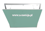 Drzwi rewizyjne REMO STRONG/MAX wykonane zostały ze spawanych, bardzo grubych profili aluminiowych. Kompletną konstrukcję tworzy zewnętrzna ramka aluminiowa, która nie jest połączona stałymi zawiasami z ramką wewnętrzną. Skrzydło drzwi wypełnione zieloną, impregnowaną płytą GK 12,5mm. Drzwiczki doskonałe do montażu w suficie. Dzięki możliwości wyjęcia skrzydła, umożliwiają łatwiejszy dostęp do otworu.