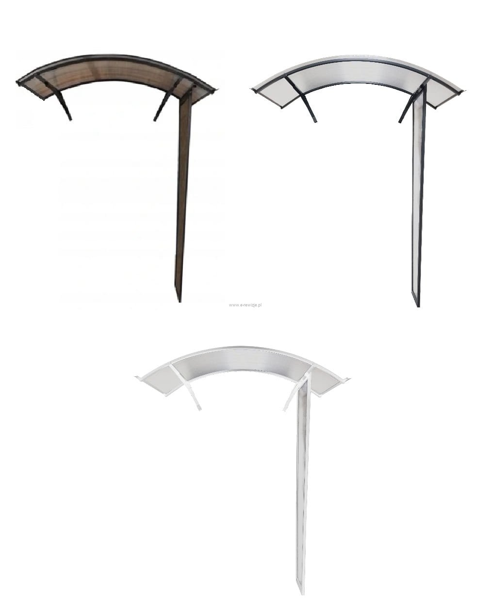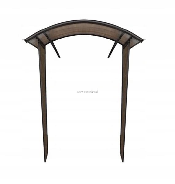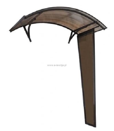 - Zadaszenie w postaci daszku nad drzwi z dwoma ściankami bocznymi- konstrukcja wykonana z poliwęglanu 4-komorowego w kolorze dymnym oraz aluminiowej ramy malowanej proszkowo na kolor brązowy. Poliwęglan o grubości 4 mm charakteryzuje się odpornością na uderzenia i promieniowanie UV, nie odbarwia się i nie kruszy. Aluminiowa rama sprawia, że konstrukcja jest mocna i stabilna.
