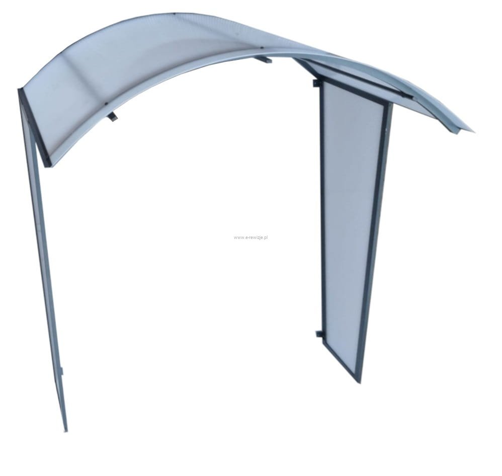 - Poliwęglan: poliwęglan komorowy w kolorze bezbarwnym o grubości 4mm - daszek i 8mm - ścianka.