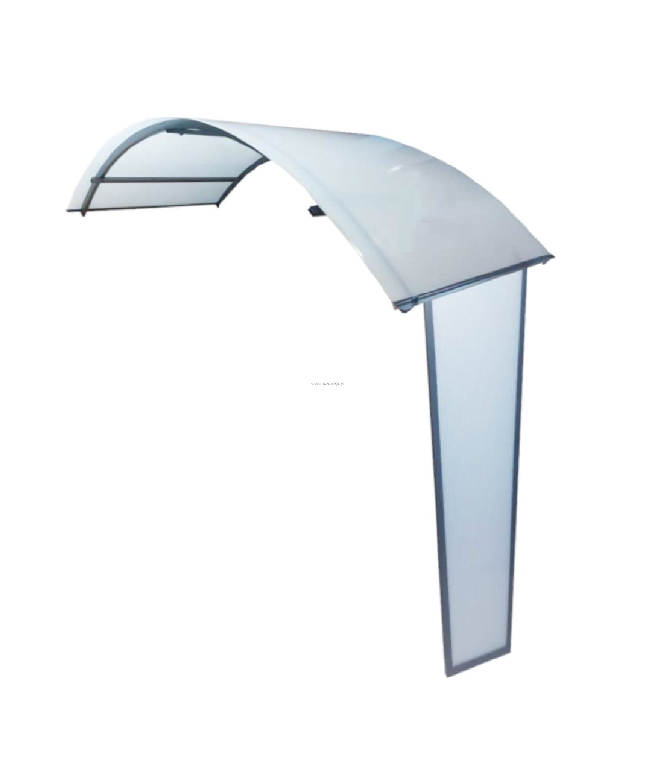 - Poliwęglan: poliwęglan komorowy w kolorze bezbarwnym o grubości 4mm - daszek i 8mm - ścianka.