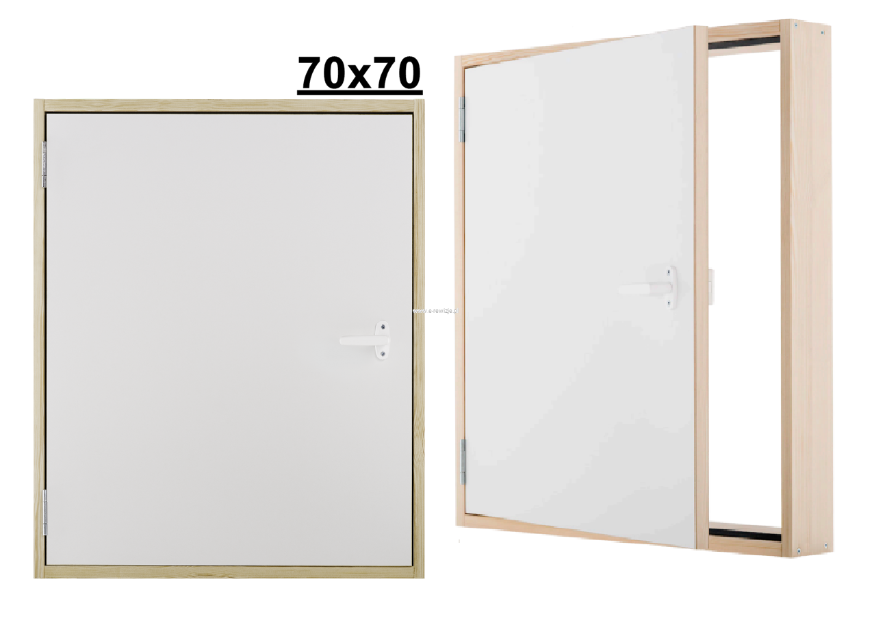PARAMETRY TECHNICZNE:WYSOKOŚĆ (a): 700 mm SZEROKOSĆ (b): 700 mm GŁĘBOKOŚĆ RAMY (c): 110 mm GRUBOŚĆ RAMY: 30 mm GRUBOŚĆ OCIEPLANYCH DRZWI: 26 mm GRUBOŚĆ IZOLACJI TERMICZNEJ: 20 mm KOLOR SKRZYDŁA: Obustronnie biały