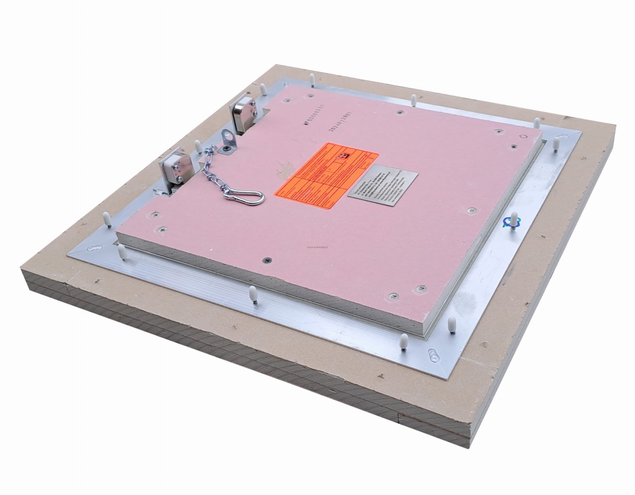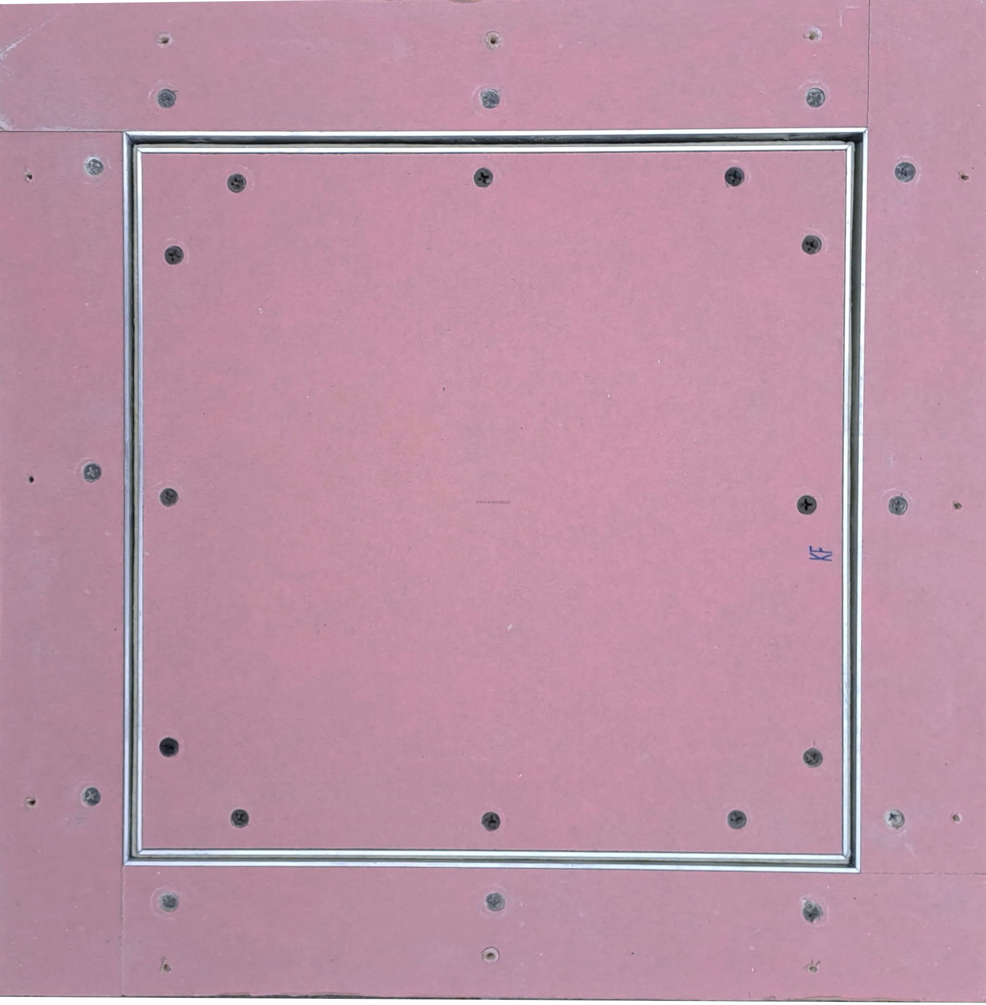 Rewizja posiada wkładkę z płyty gipsowo-kartonowej GKF (płyta o podwyższonej odporności ogniowej) o grubości 25 mm.