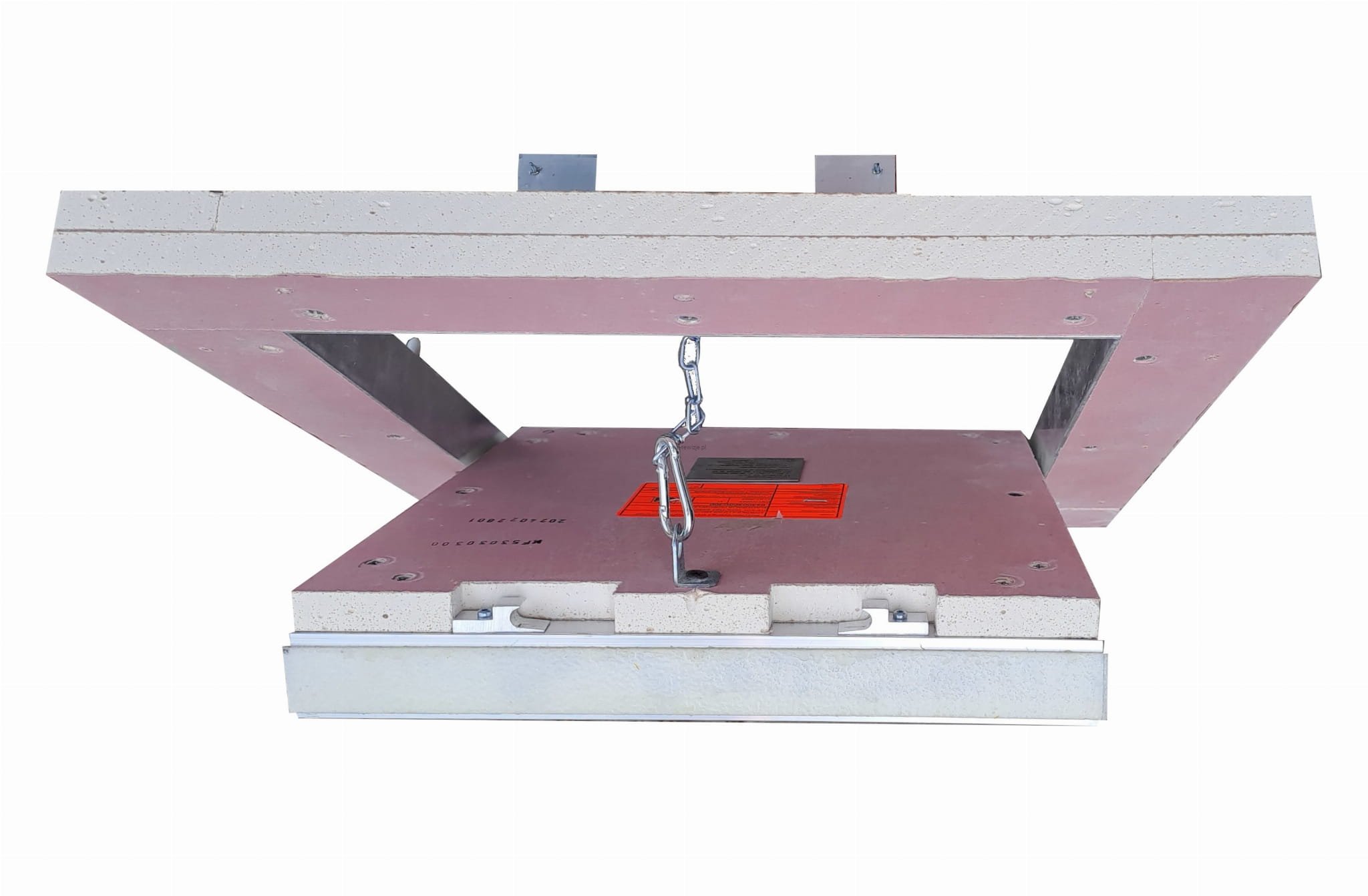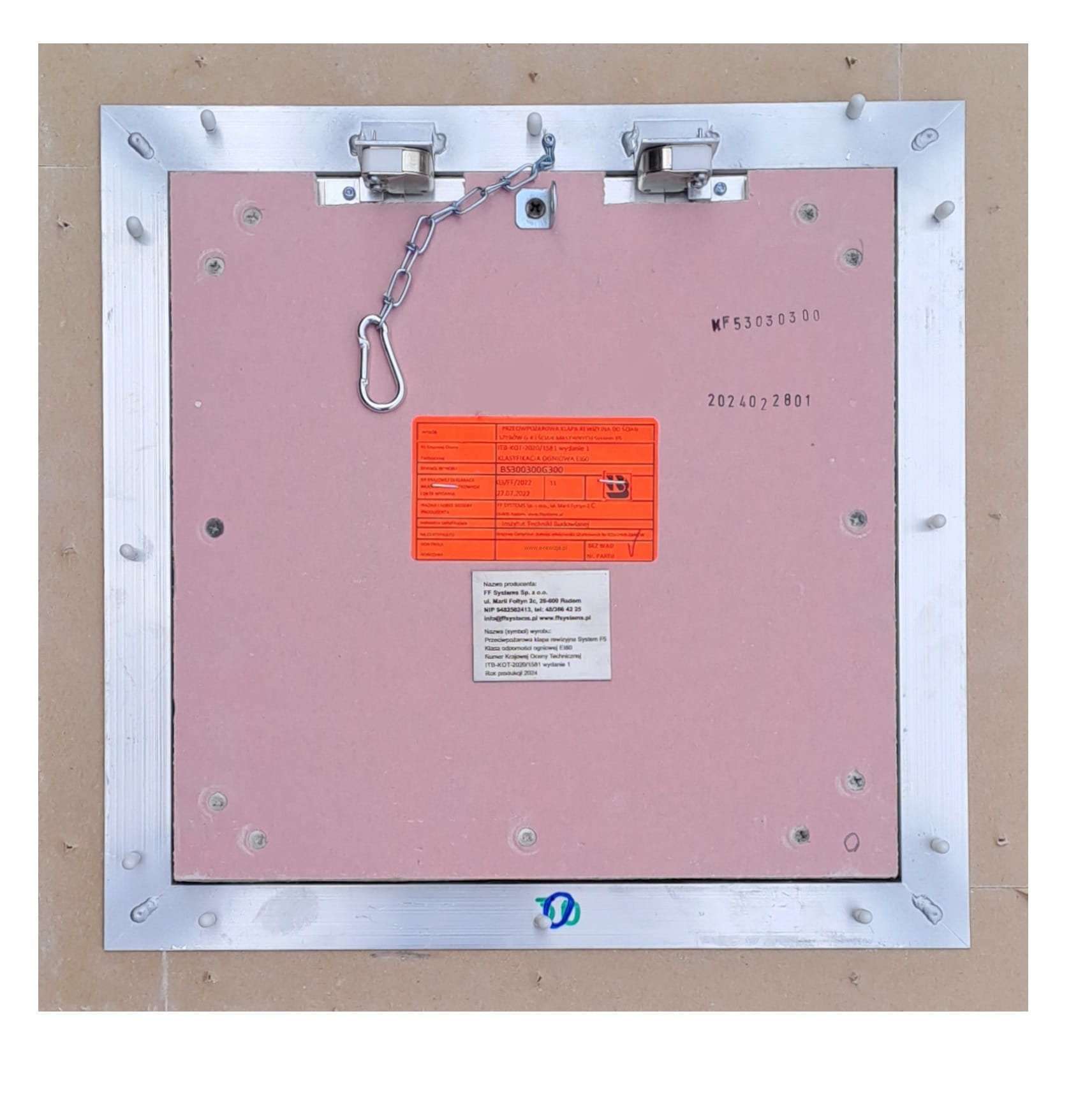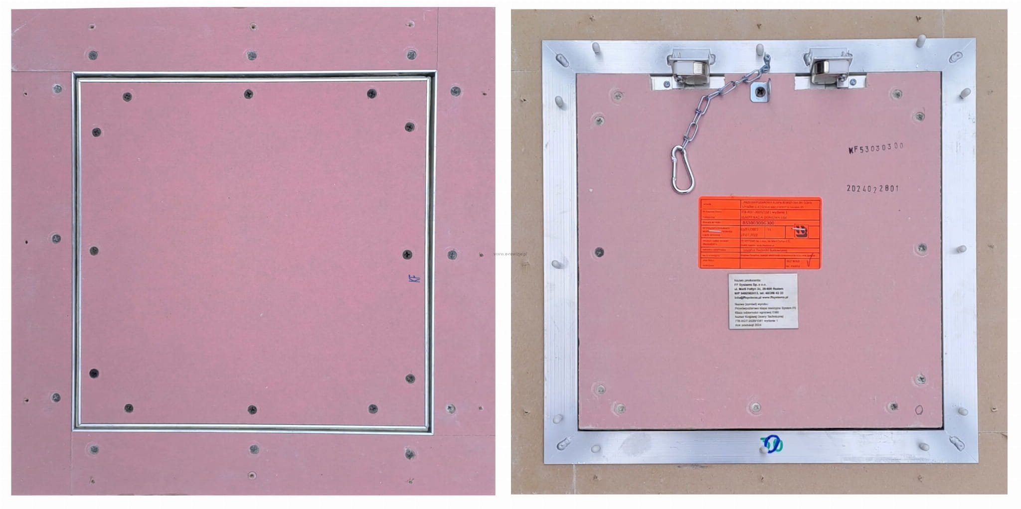 Rewizja posiada wkładkę z płyty gipsowo-kartonowej GKF (płyta o podwyższonej odporności ogniowej) o grubości 30 mm.