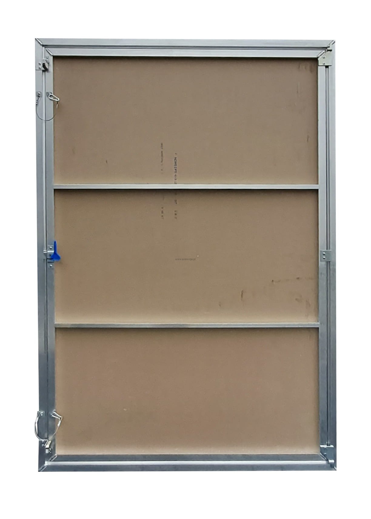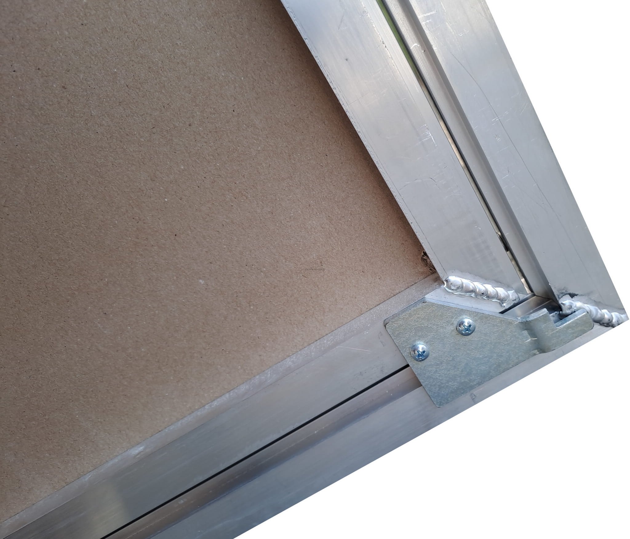 Drzwi rewizyjne RIVET STRONG wykonane zostały ze spawanych, bardzo grubych profili aluminiowych. Kompletną konstrukcję tworzy zewnętrzna ramka aluminiowa połączona stałymi zawiasami z ramką wewnętrzną, wypełnioną zieloną płytą GK. Dzięki stałemu zawiasowi cała konstrukcja jest stabilna, a drzwiczki mogą być z powodzeniem montowane w pozycji pionowej lub poziomej. Skrzydło drzwi dodatkowo zamykane jest na klucz czworokątny, aby w przypadku montażu w suficie zminimalizować obciążenie.