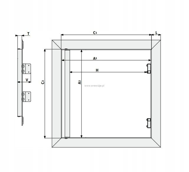 WYMIARY REWIZJI: A1: 600 mm A2: 600 mm C1: 605 mm C2: 605 mm L: 24 mm H: 549 mm T: 13 mm V: 44 mm |