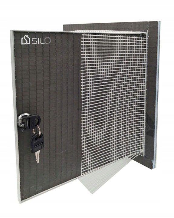 FASADE RIVET LOCK 20x30 cm – Elewacyjne Drzwiczki Rewizyjne Z Kluczem | UCHYLNE Z SIATKĄ | Do Tynku i Elewacji