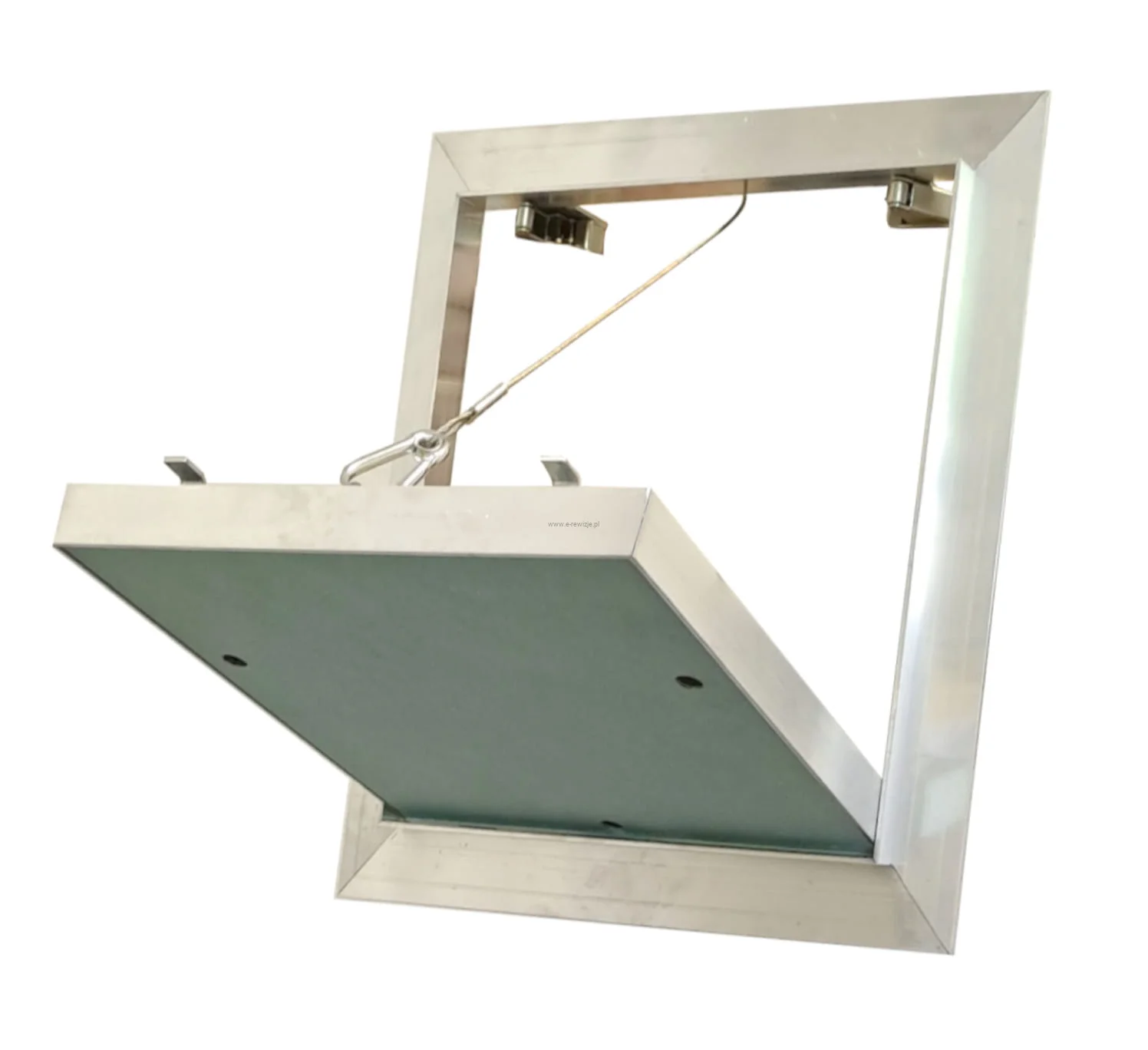 - Drzwiczki są doskonałe do montażu w suficie, choć mogą być również montowane na ścianie (zamkami klik do góry).