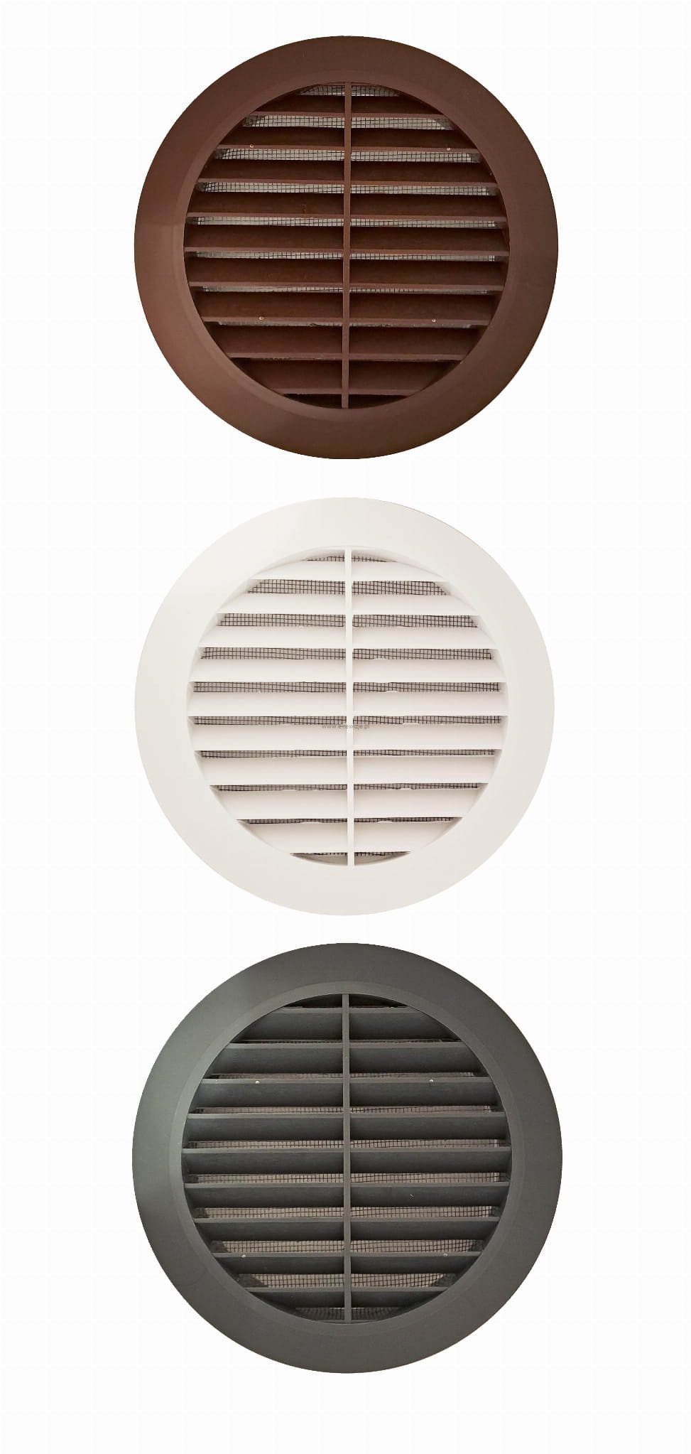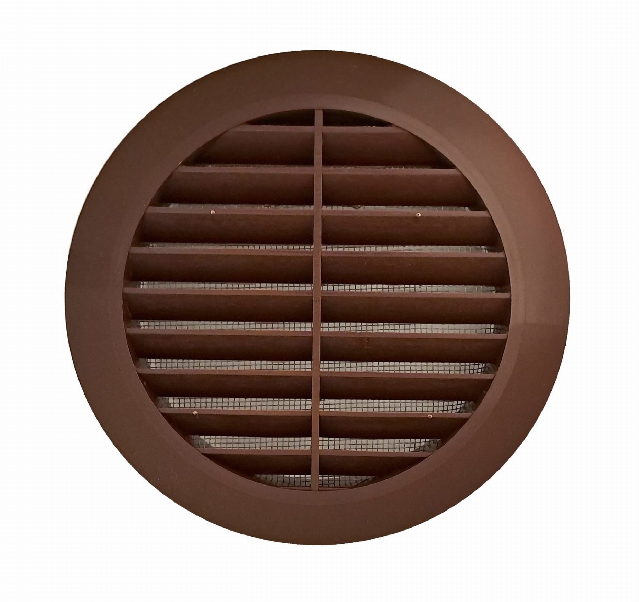 Kratka OKRĄGŁA PLASTIKOWA FI125 wentylacyjna z siatką BRĄZOWA