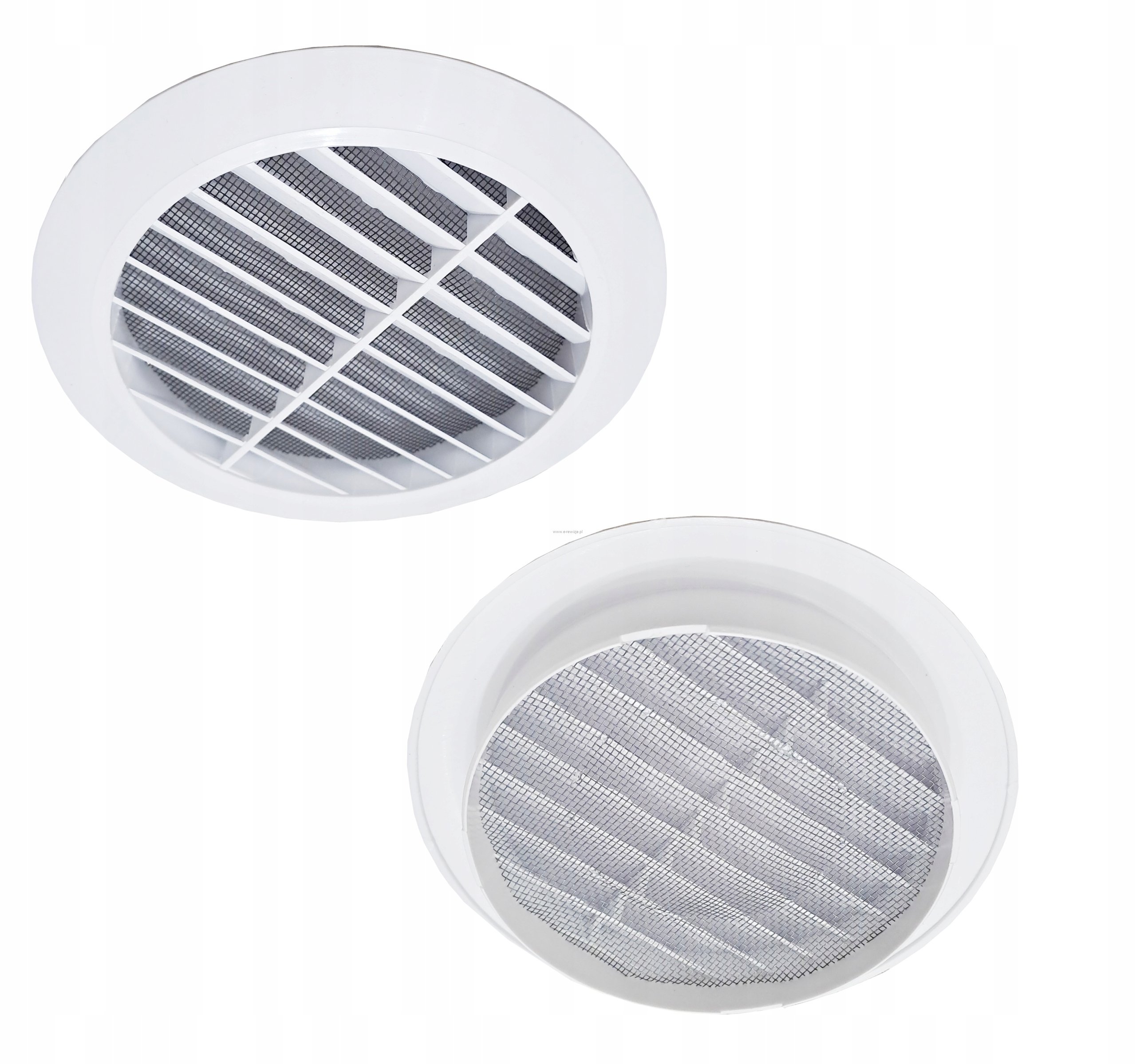 - Typ: okrągła kratka wentylacyjna jednoczęściowa z siatką