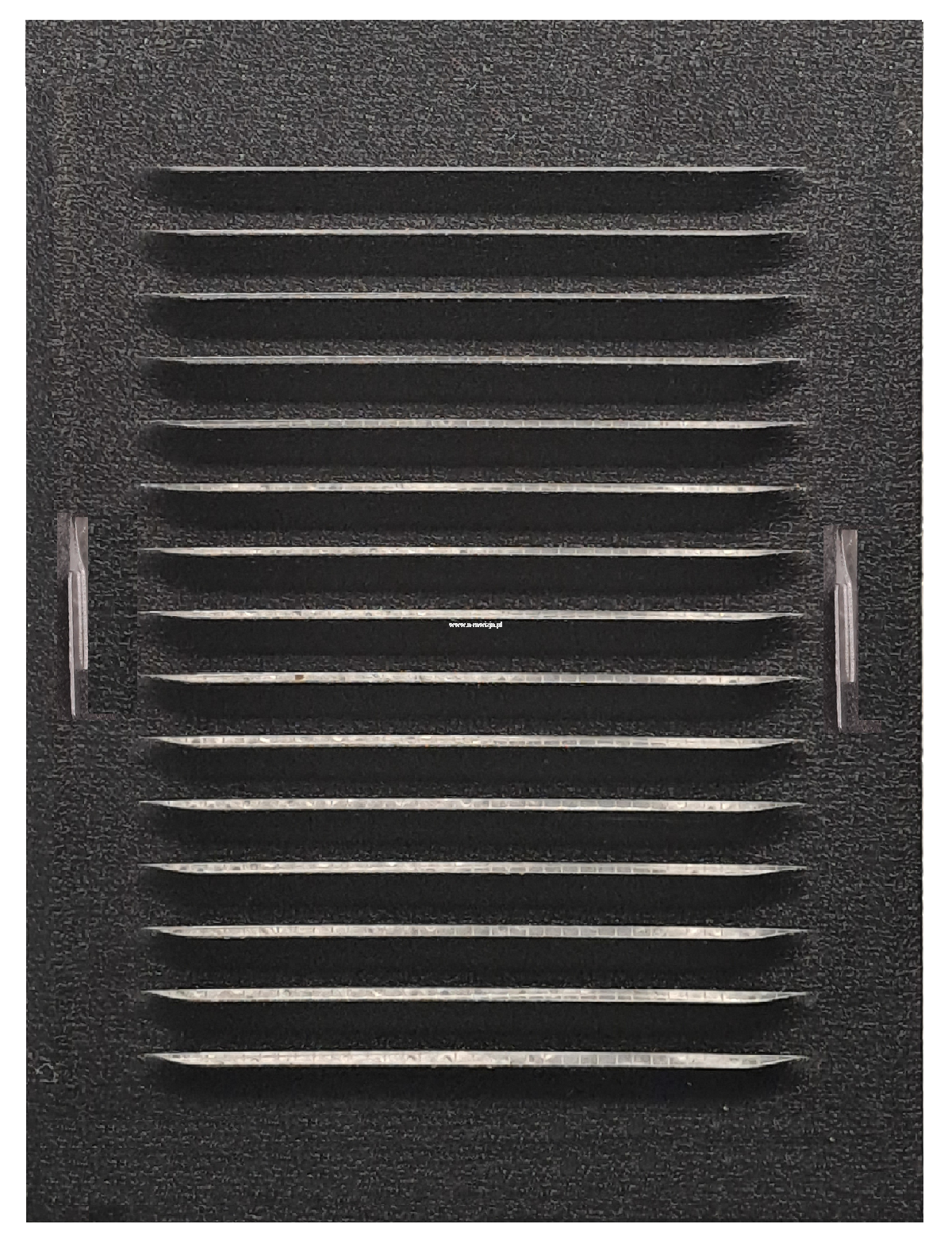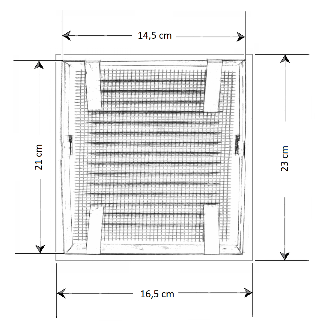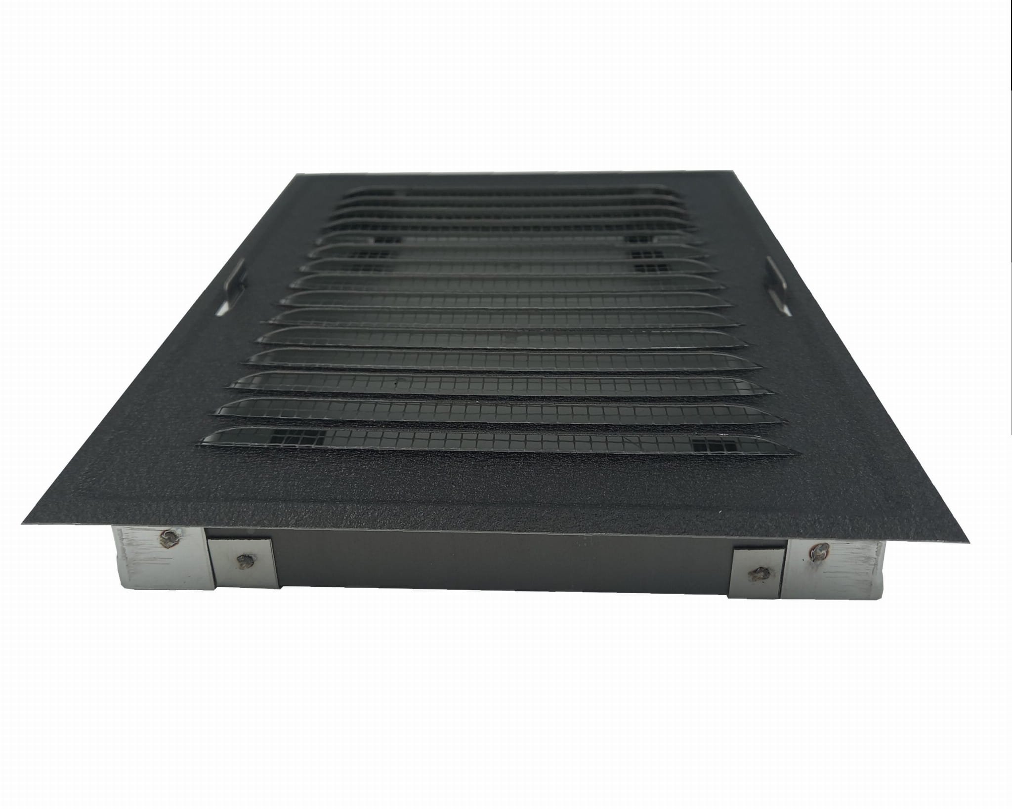 - Metalowa płaska kratka ze skośnymi żeberkami.