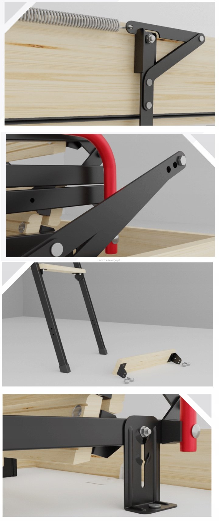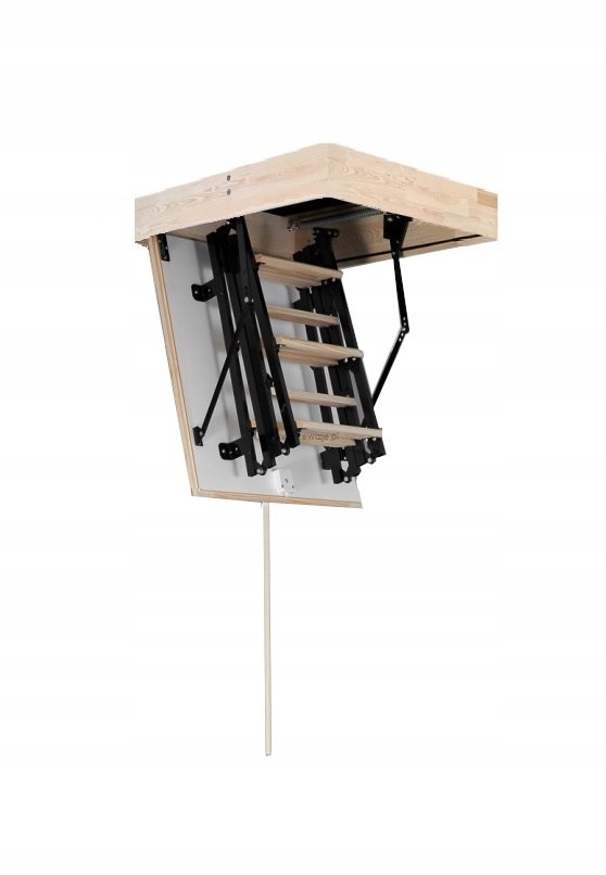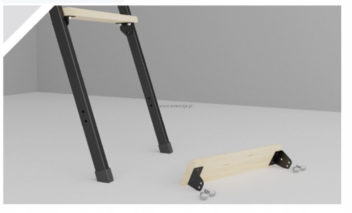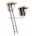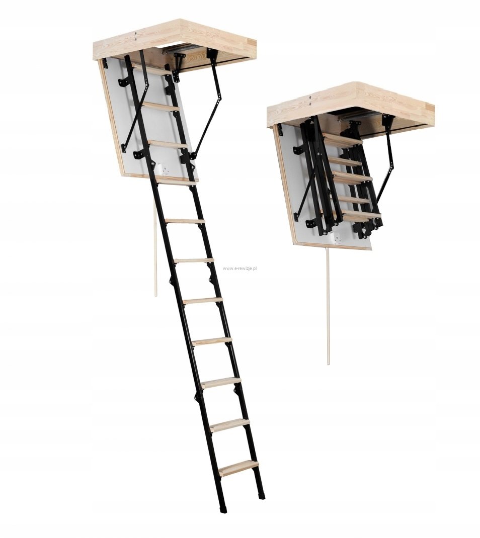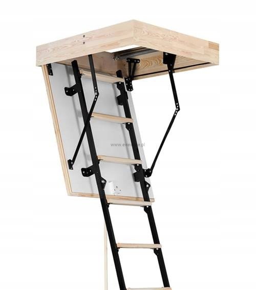 - Schody posiadają 4-sekcyjną, metalową drabinkę z drewnianymi stopniami.