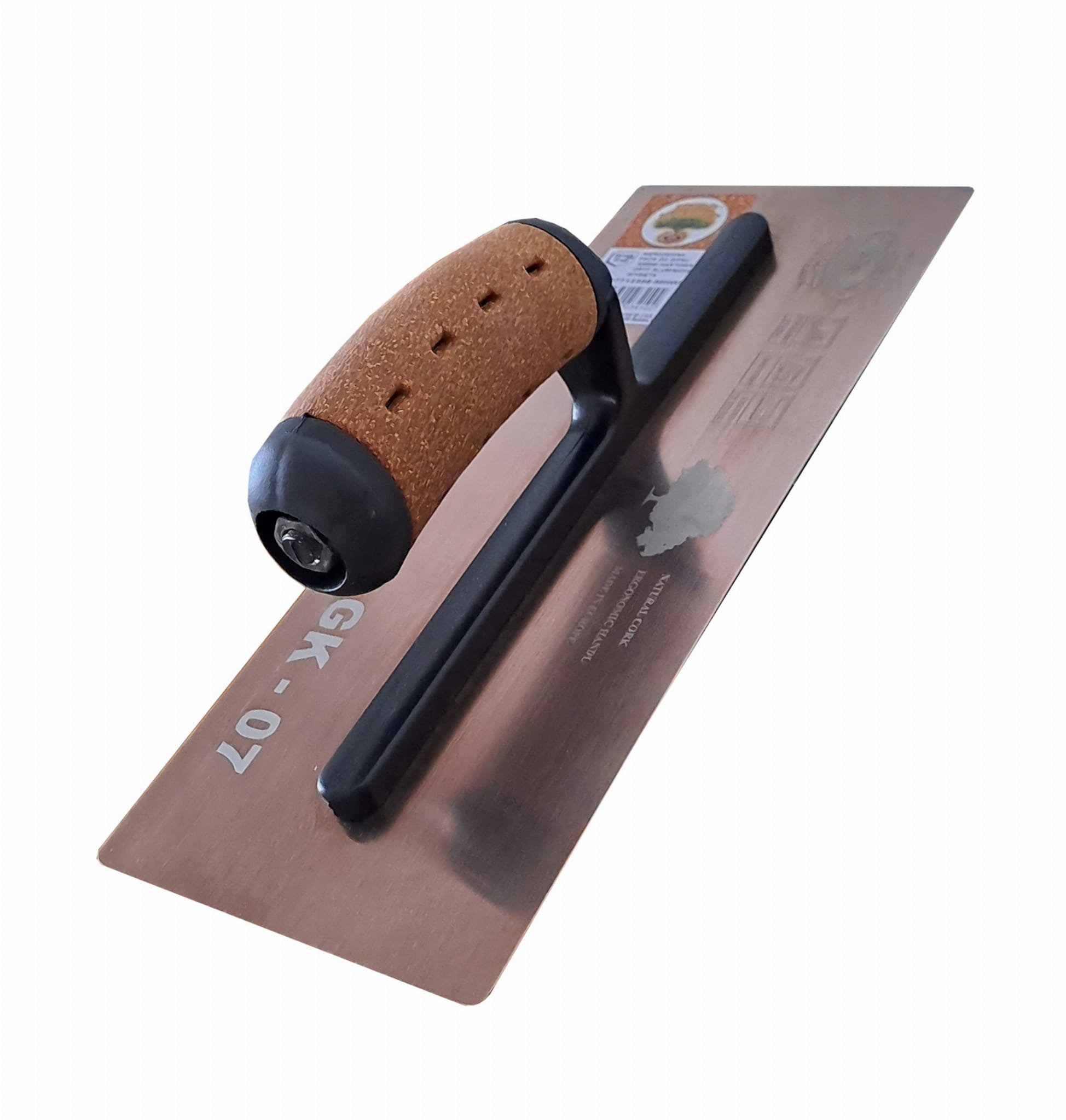 Paca posiada ergonomiczną rączkę wykonaną z przyjemnego w dotyku, ekologicznego korka. Wyprofilowana rękojeść sprawia, że pacę pewnie i wygodnie trzyma się w dłoni. Zapewnia to poczucie kontroli nad narzędziem. Ta komfortowa rączka sprawia, że narzędziem można długotrwale pracować, nie męcząc nadmiernie dłoni.
