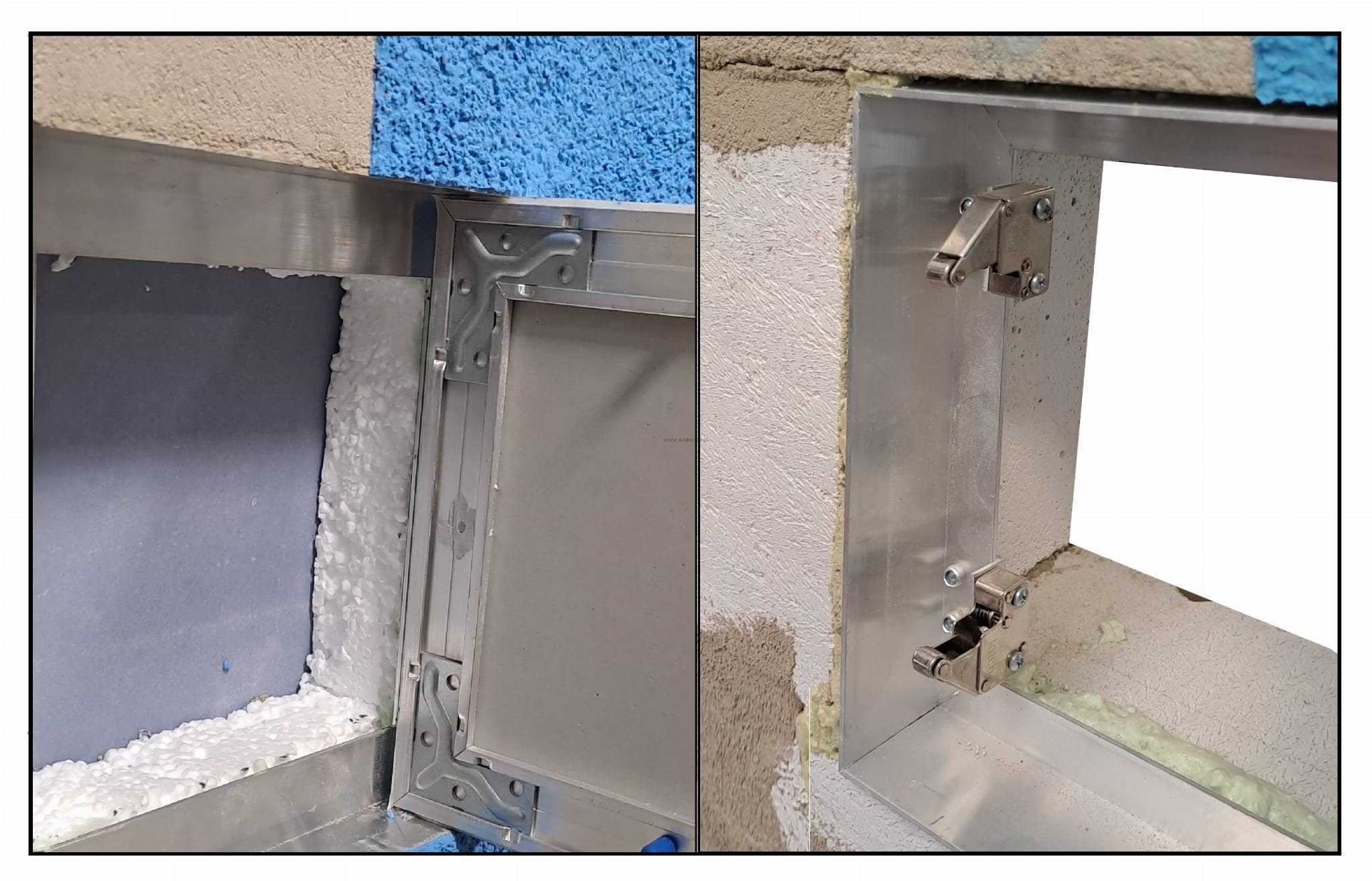 - Drzwiczki licują się ze ścianą budynku tworząc estetyczne i spójne połączenie z elewacją.