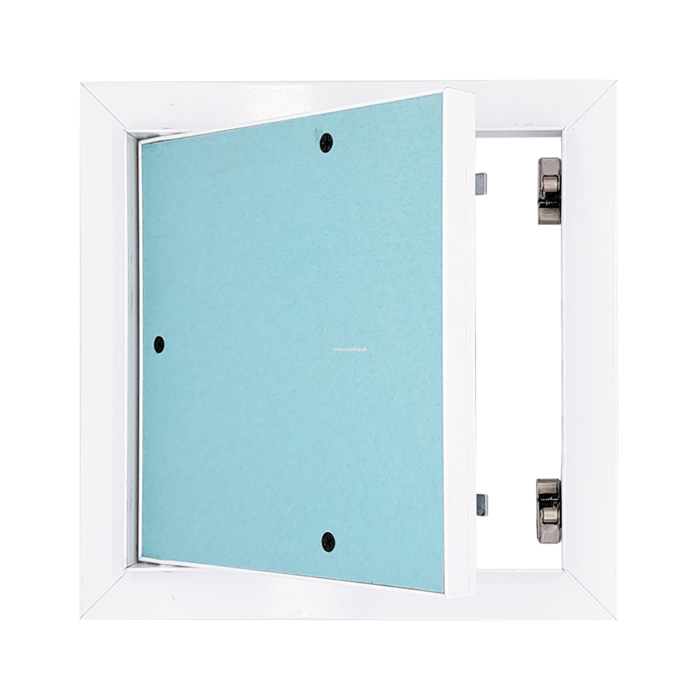 RIVET WHITE - DRZWICZKI REWIZYJNE ALUMINIOWE, MALOWANE NA BIAŁO NA ZAWIASACH Z WODOODPORNĄ PŁYTĄ G-K 200x200x12,5 MM