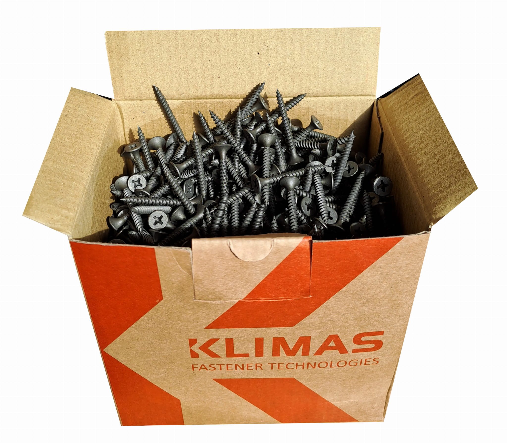 - Wkręty wykonane ze stali niskowęglowej pokrytej specjalną powłoką fosfatową.