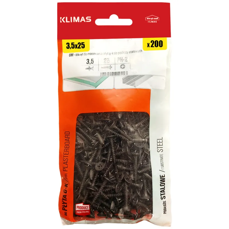 Wkręty do metalu 3,5x25 - 200 szt KSGM - Klimas PH2